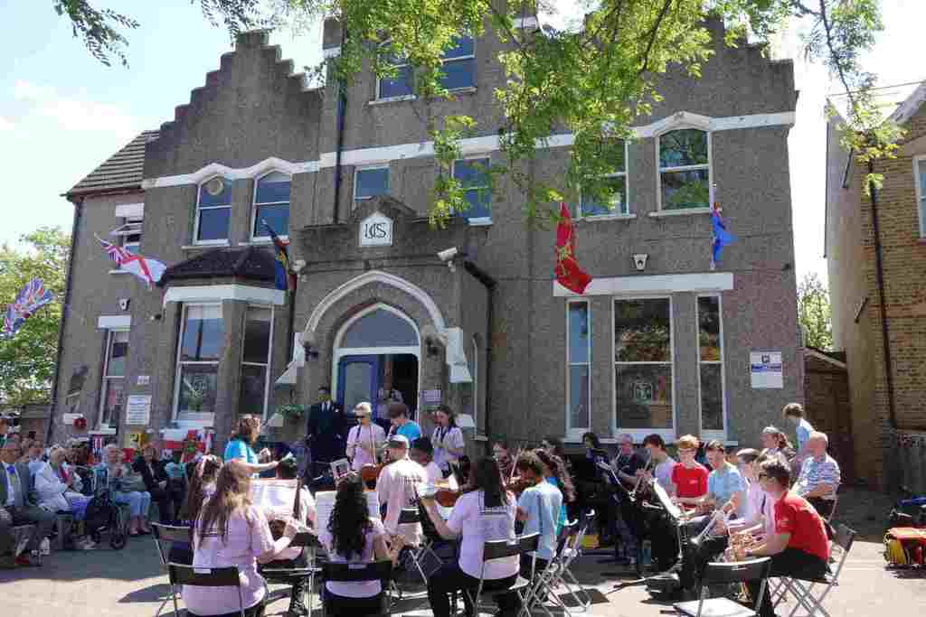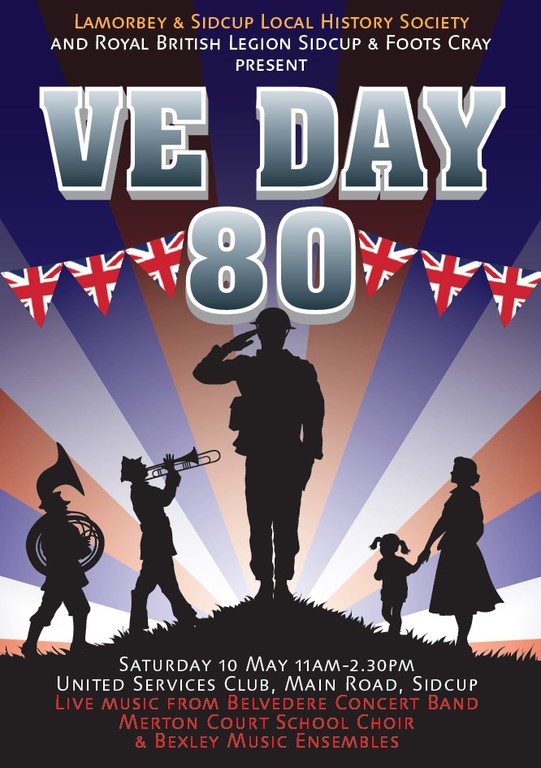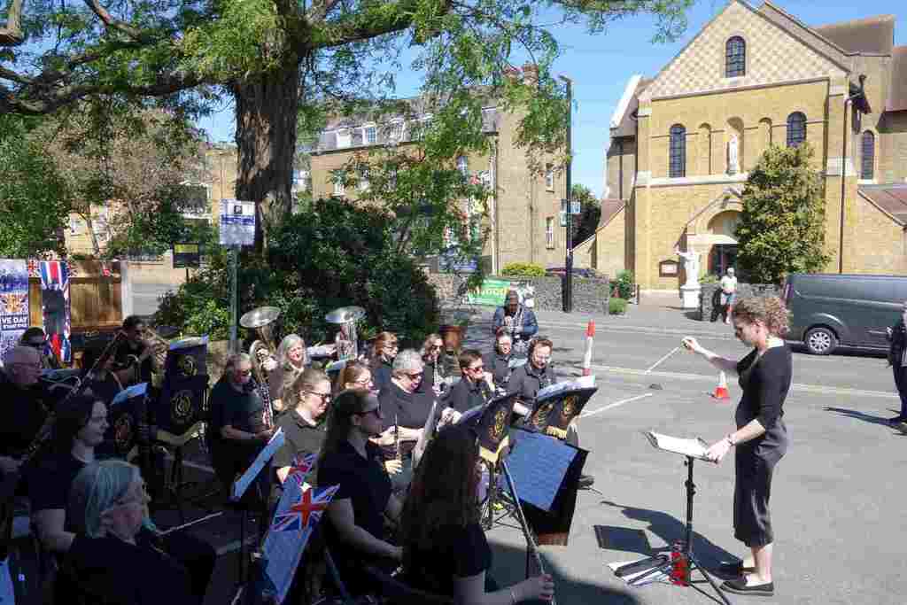 The Lamorbey & Sidcup Local History Society and the Royal British Legion Sidcup & Foots Cray marked the 80th anniversary of VE Day with a celebration in music. At the front of the United Services Club in Main Road, Sidcup on Saturday 10 May 11am-2.30pm there was live music from the Belvedere Concert Band, Merton Court School Choir and Bexley Music Ensembles.