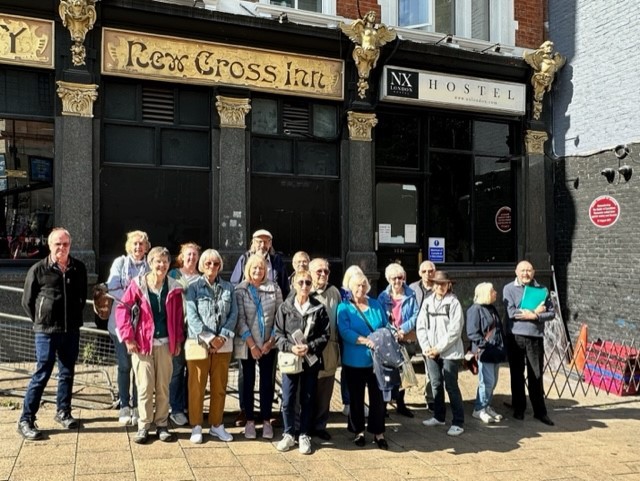 A group of members met Dr John Price, Senior Lecturer at Goldsmiths, University of London for a guided walk of New Cross. We heard about the lives of the families who lived in Laurie Road and St James's, and the history of the Deptford Town Hall. There were tragic stories from the day in 1944 when a V2 hit Woolworths, killing 168 people, and the heart-breaking tale of Frank Cavilla and his family. Next came the Battle of Lewisham in 1977 and the New Cross Fire in 1981. So much history in such a small area.